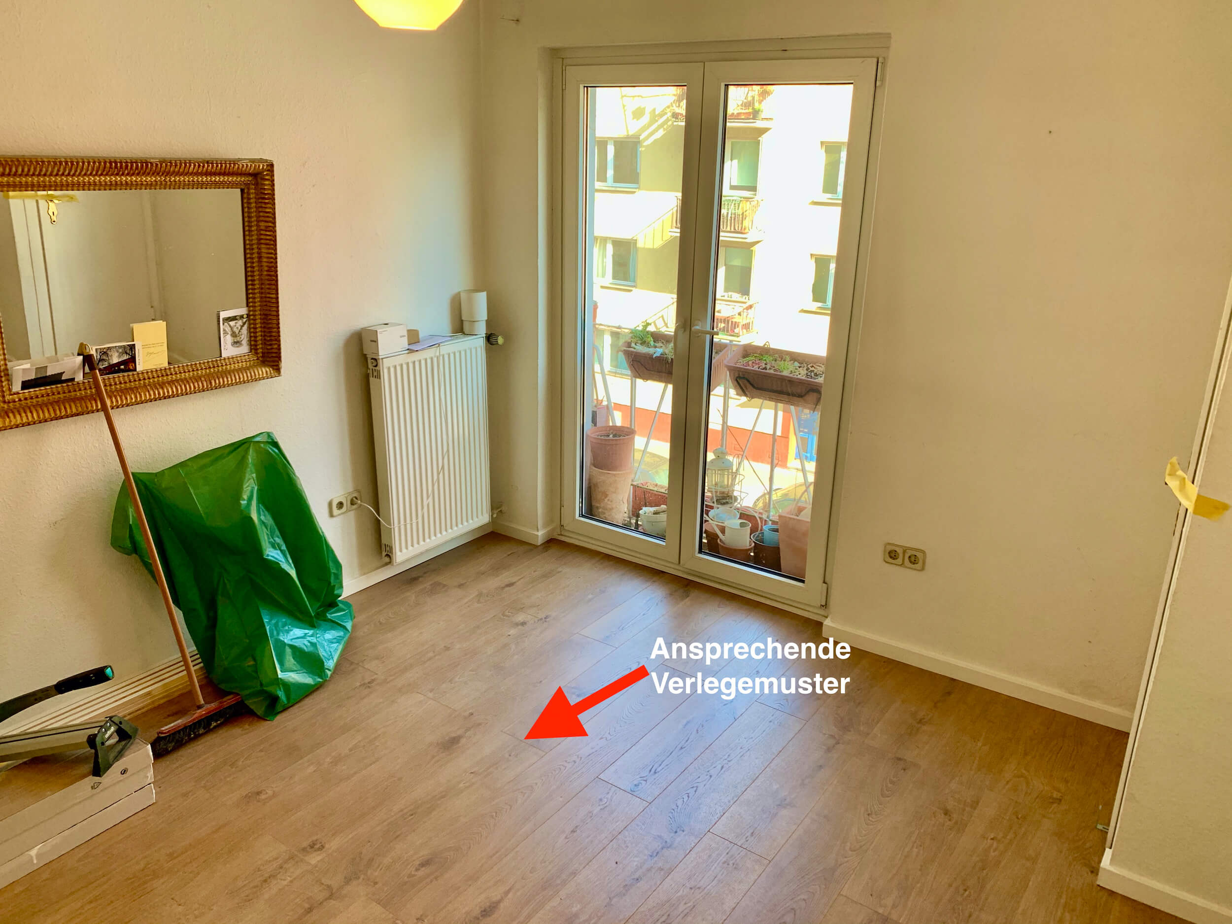 Laminat und teppich innerhalb einer türöffnung aufeinandertreffen oder auch laminat und fliesen.